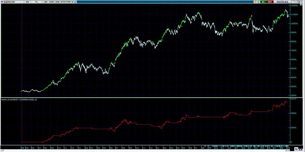 ALGOBIST.COM ÇİFT YÖN sistemi hem long hemde short yönde çalışmaktadır. Manuel ve otomatik işlemler için uygundur. Trend takip sistemi mantığıyla işlem yapmaktadır. Tercihe göre otomatik işlem için 20-30 hisse ile sepet yaparak kullanılabilir. Bist 100 back test sonuçları için aşağıdaki sonuçları gör butonuna basınız.